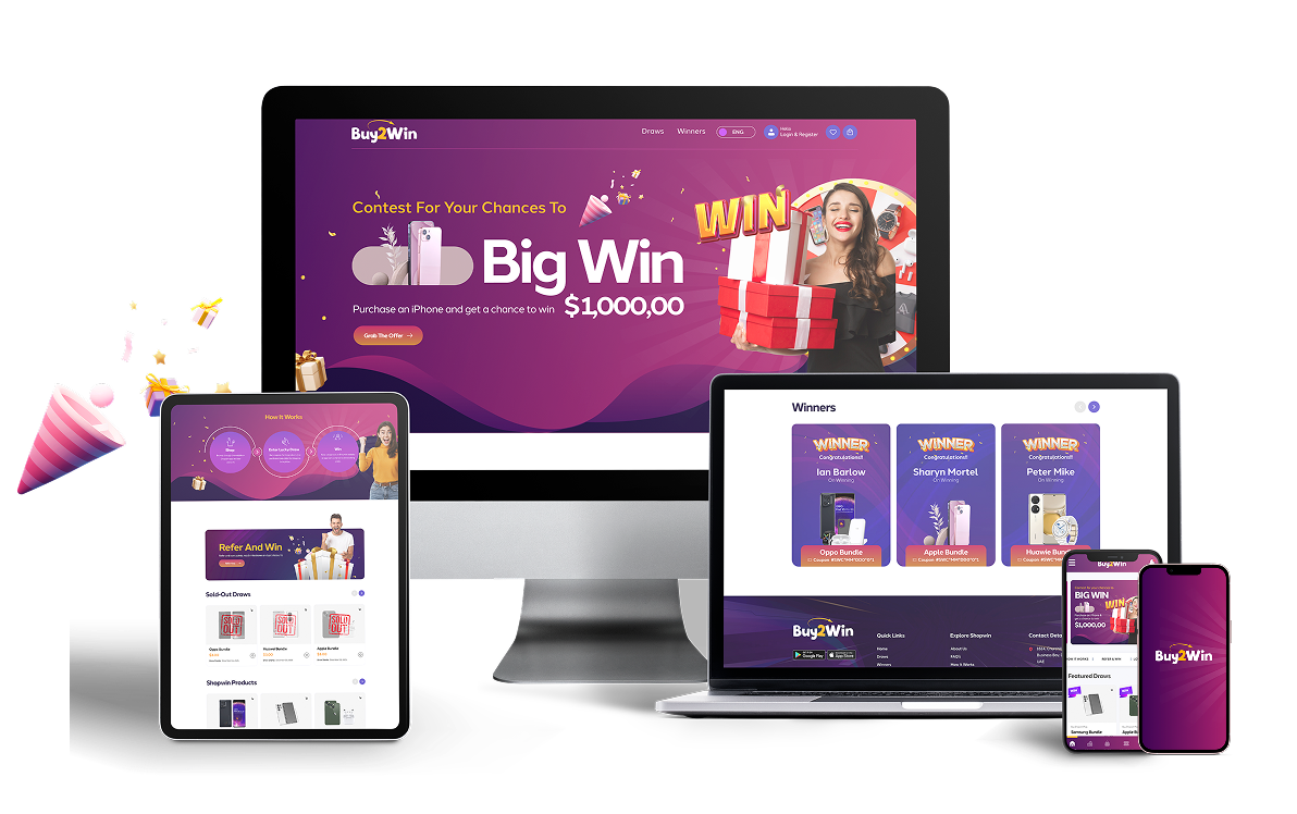 The Buy2Win ecosystem was designed as a dual-platform solution - Website & Mobile App