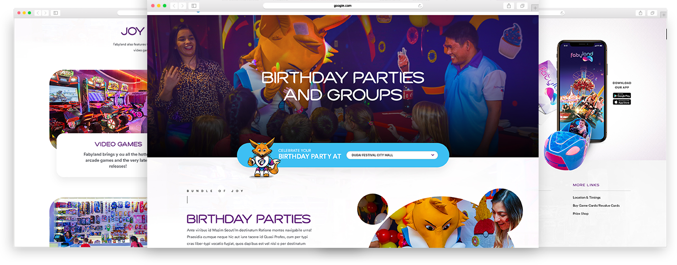 Fabyland is a “futuristic” family entertainment destination for children of all ages, featuring fun-filled rides, action-packed gaming arcades and intriguing novelty machines with rewards for every level of skill. The exhilarating destination offers everyone a heightened experience in leisure and entertainment; from tiny tots to mums and dads. Fabyland offers more value to its customers with customized school trips and birthday party packages. Fabyland was looking for a vivacious yet informational website and mobile app to keep their visitors abreast of their attractions, locations, timings, packages, offers, discounts and more, while showcasing thrilling experiences and exclusive news to keep their customers engaged. The platform would also allow users to purchase/reload game cards directly from the website/app and even redeem prizes and check remaining balance.