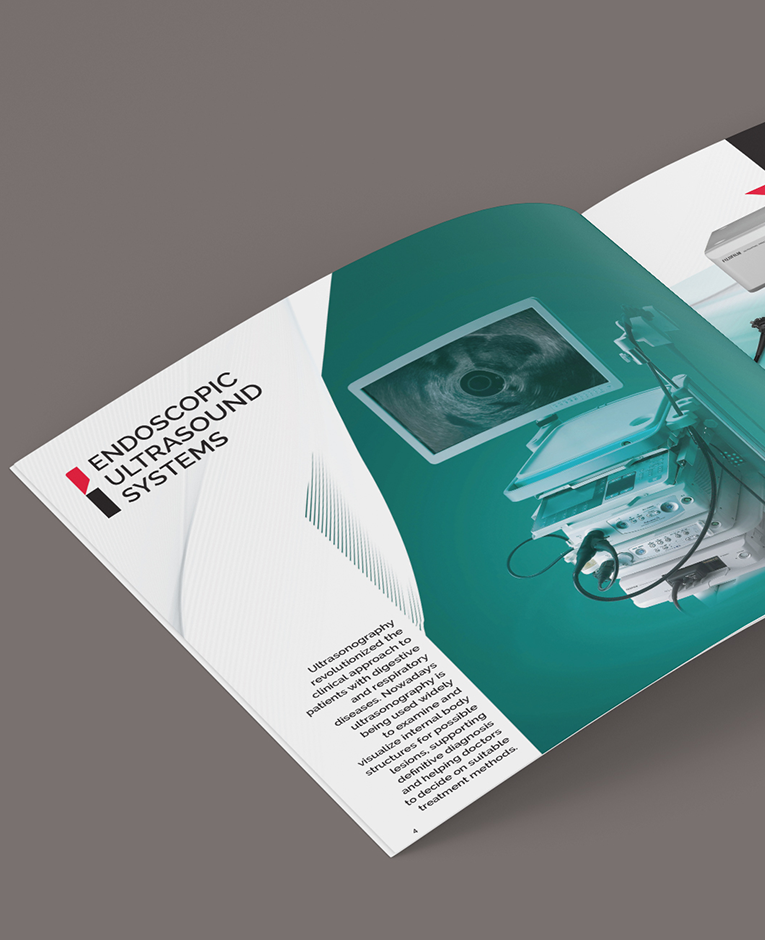 Since team Branex was provided with a lot of information regarding the product, its specifications & doctor’s reviews, it was then at our disposal to design a brochure that truly depicts the working of the ultrasound system, be used in medical exhibitions, events, conferences or even by sales rep to promote the newly introduced medical system & looks exceptionally eye-catching.