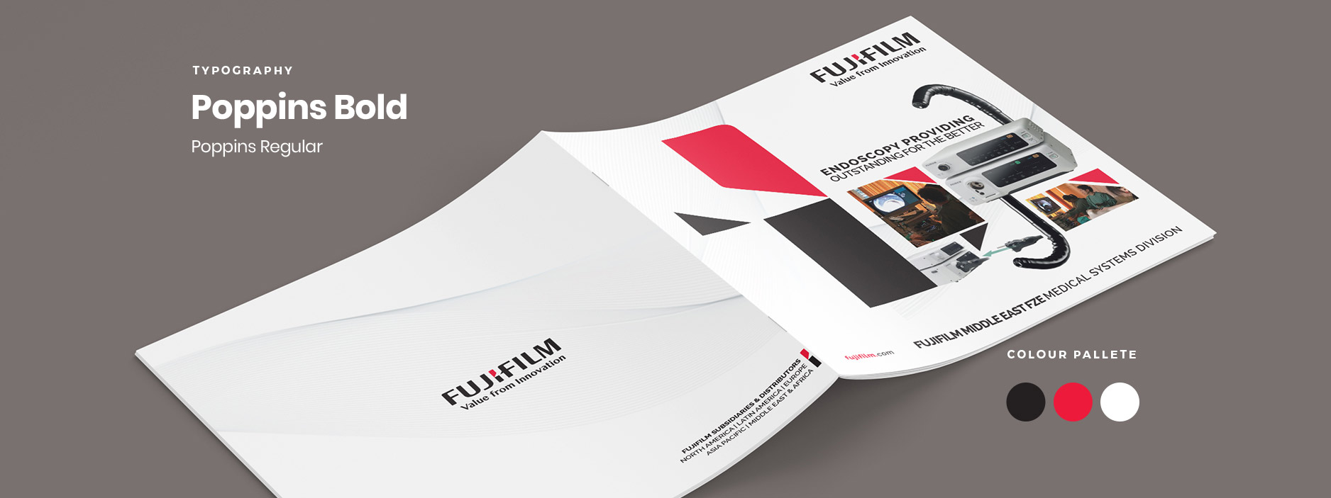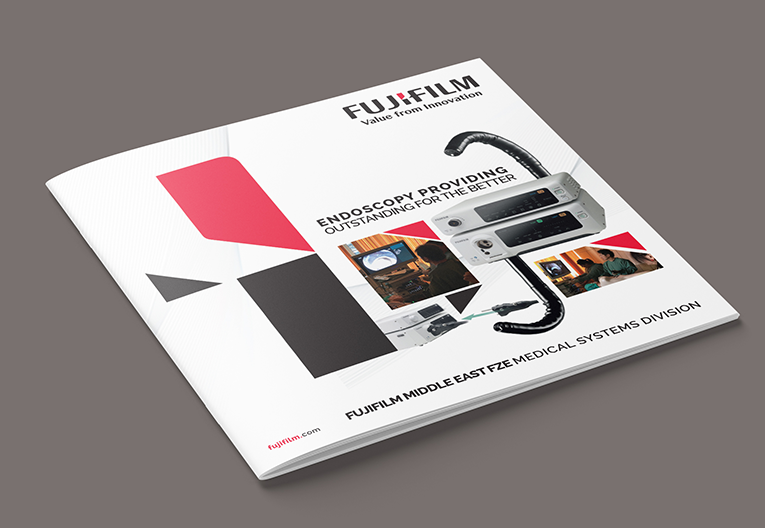 The brochure for Fujifilm sports a stunning design, portrays the equipment in the best manner & powerful enough to be leveraged as an important brand collateral that is ought to bring a difference.